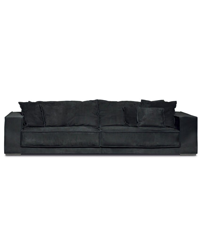 Baxter’s Budapest sofa stands out with its artisanal leather finishes and avant-garde style. It balances bold design with comfort, perfect for those seeking a distinctive centerpiece imbued with Italian craftsmanship.